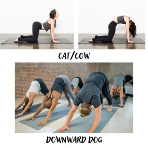 4–Stretch before bed: Try some light stretches such as cat/cow and downward dog before you go to sleep tonight. Spend about 5 minutes on each stretch.